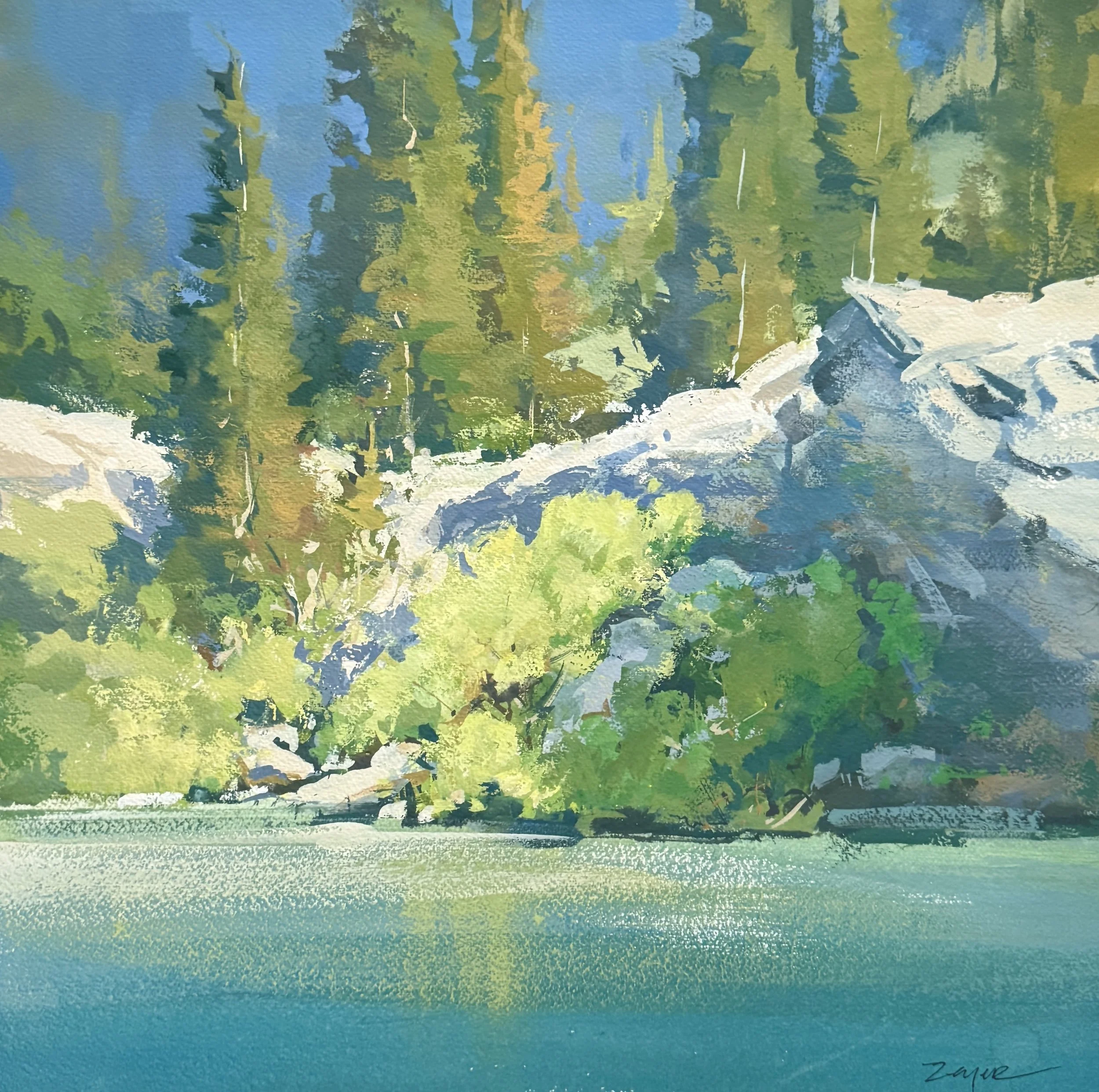 “Whispers of Light on Topaz Waters” | 14x14 Gouache
